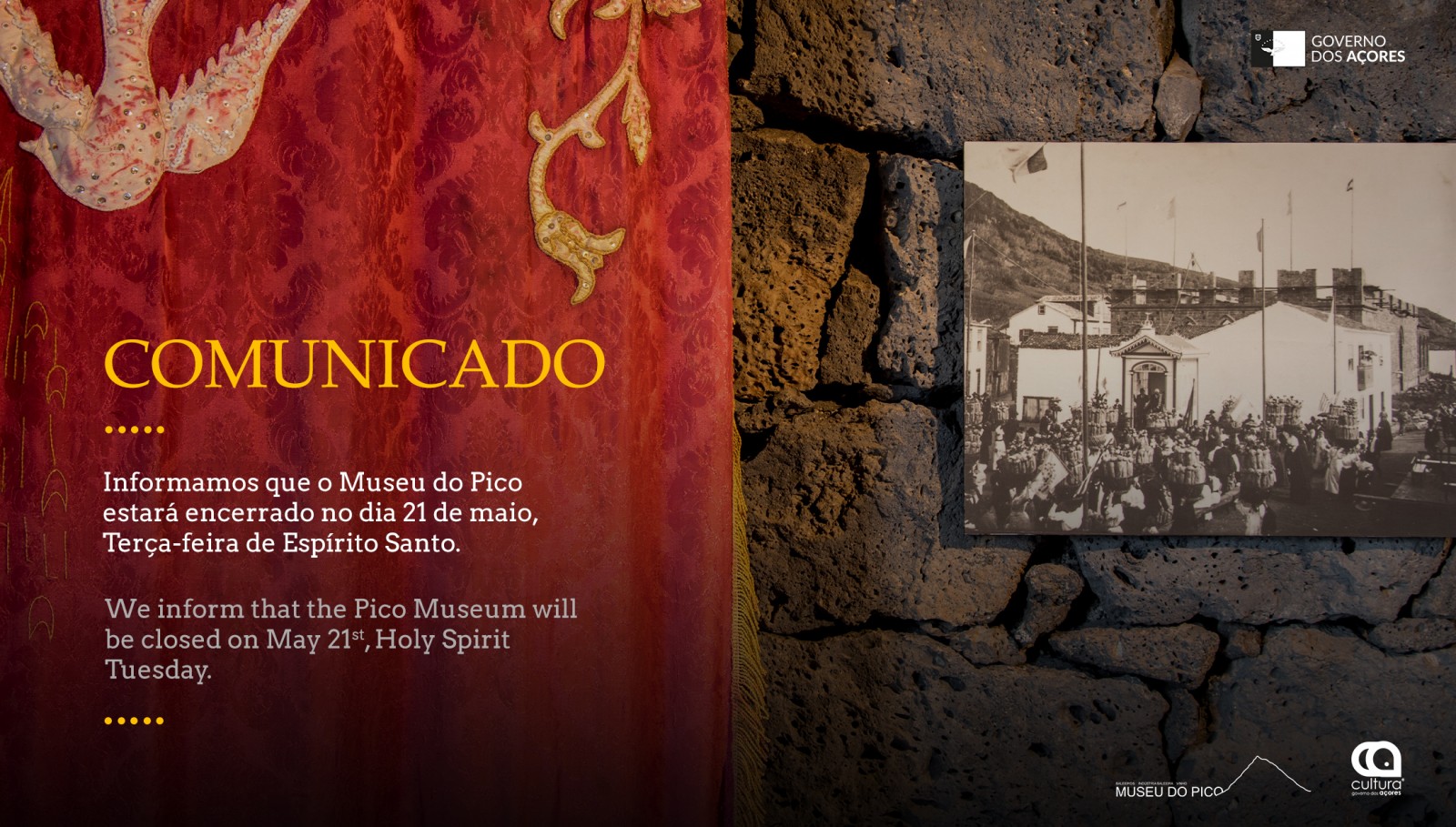Informamos que o Museu do Pico estará encerrado no dia 21 de maio, Terça-feira de Espírito Santo.