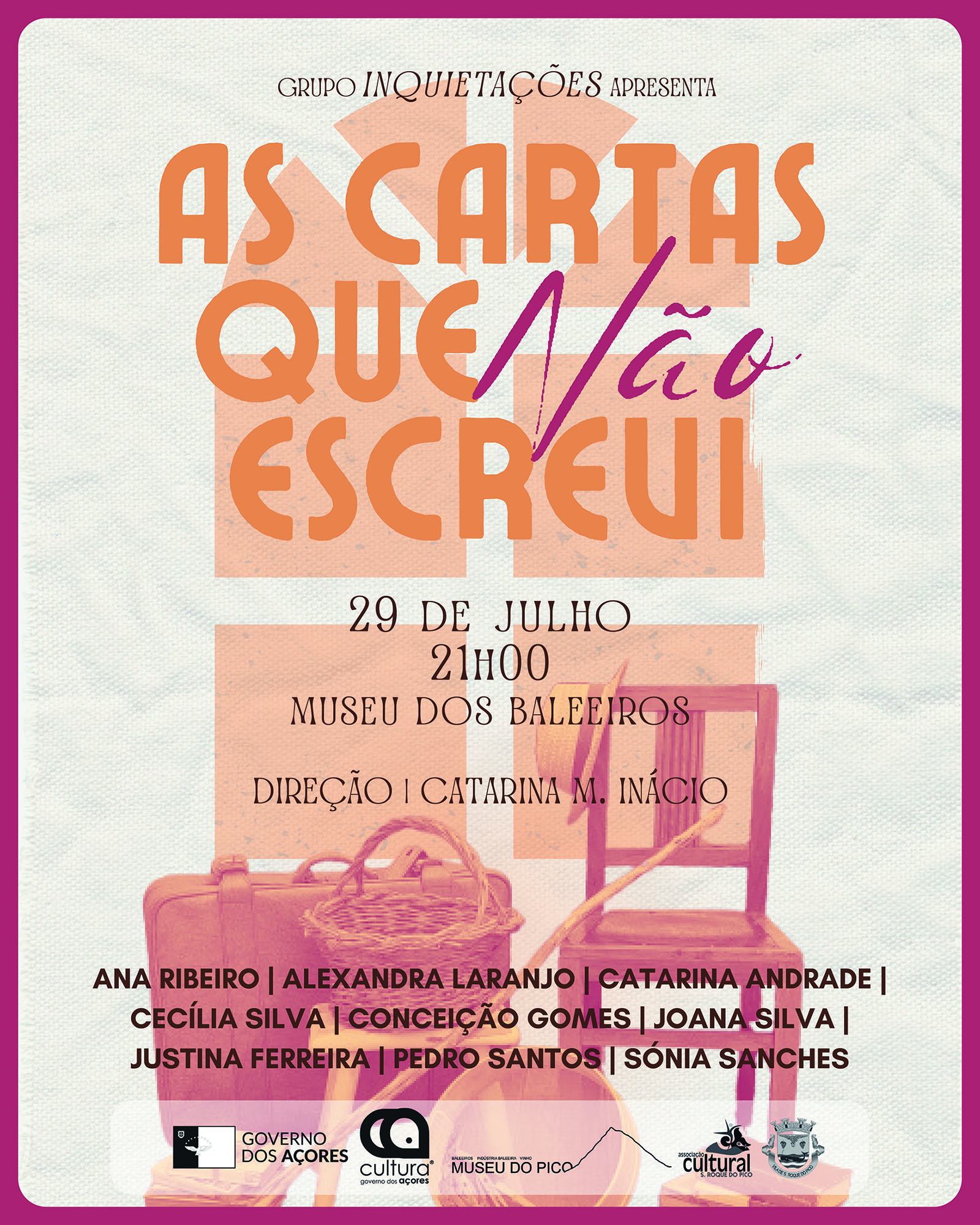 O Museu do Pico acolhe, no próximo dia 29 de julho, pelas 21h00, no Auditório do Museu dos Baleeiros, o espetáculo “As Cartas Que Não Escrevi”, dirigido e encenado por Catarina M. Inácio.