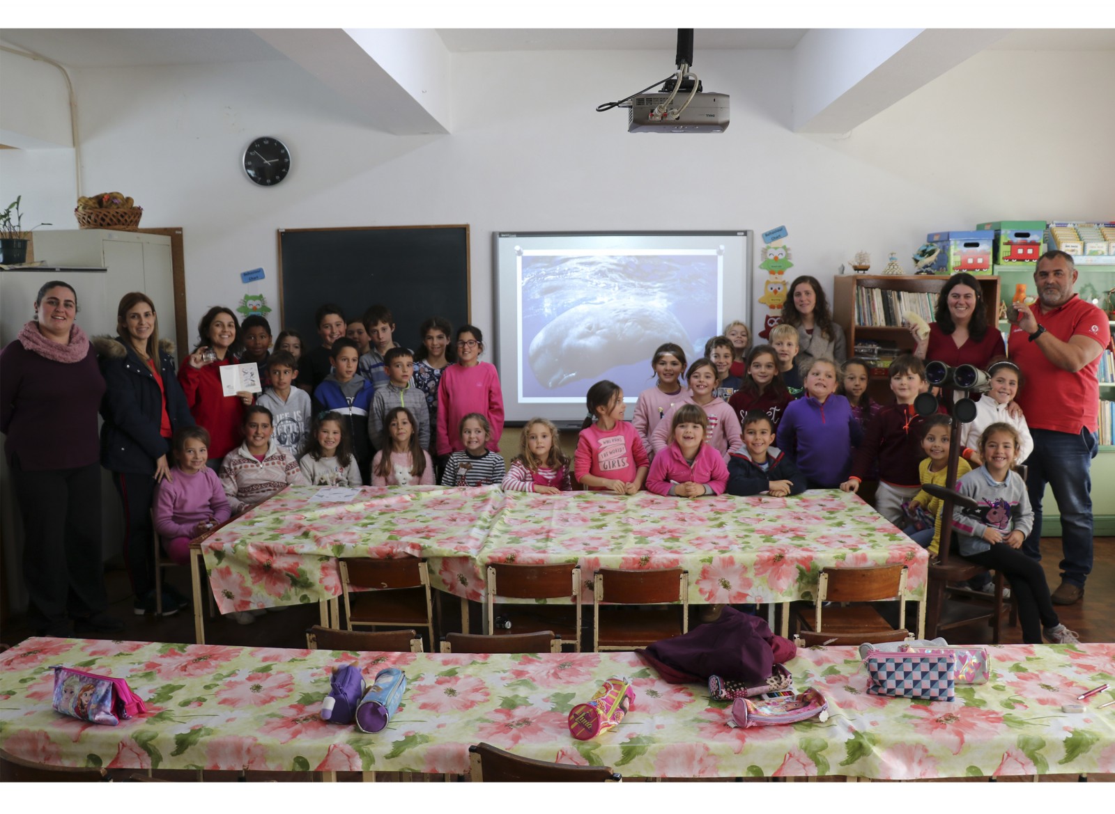 Para melhor contextualizar esta ação, a atividade desenrolou-se no período letivo do Projeto Despertar para as Ciências, e contou com o apoio da professora responsável Carla Cardoso, a qual enquadrou o dia a comemorar, e com base numa projeção, classificou e caraterizou a temática a abordar, o cachalote. Igualmente, a fim de se abordar a cultura da baleação, bem como a vida no mar dos cetáceos, nomeadamente dos cachalotes, para além do contributo do Museu, contou-se com a colaboração do vigia da baleia, Carlos Silva, o qual trouxe, para delícia das crianças, a sua vigia móvel.