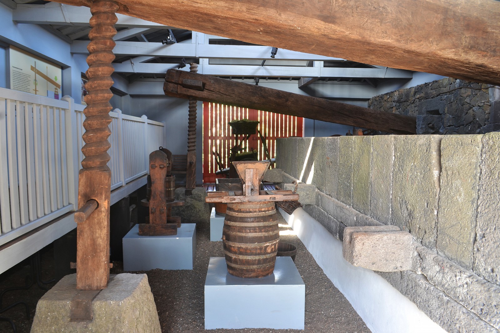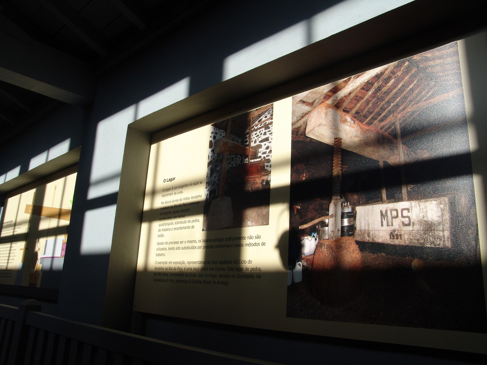 Na época áurea do Vinho Verdelho existiam, na ilha do Pico, centenas de lagares em pedra, em madeira e em cimento. Neste espaço destaca-se o grande lagar em pedra, de três bicas, peça única nos Açores. Este exemplar pertenceu ao Solar da Família Street de Arriaga, situado no Guindaste, na Candelária do Pico. Neste edifício é feita a interpretação técnica dos sistemas e métodos tradicionais de prensagem das uvas.