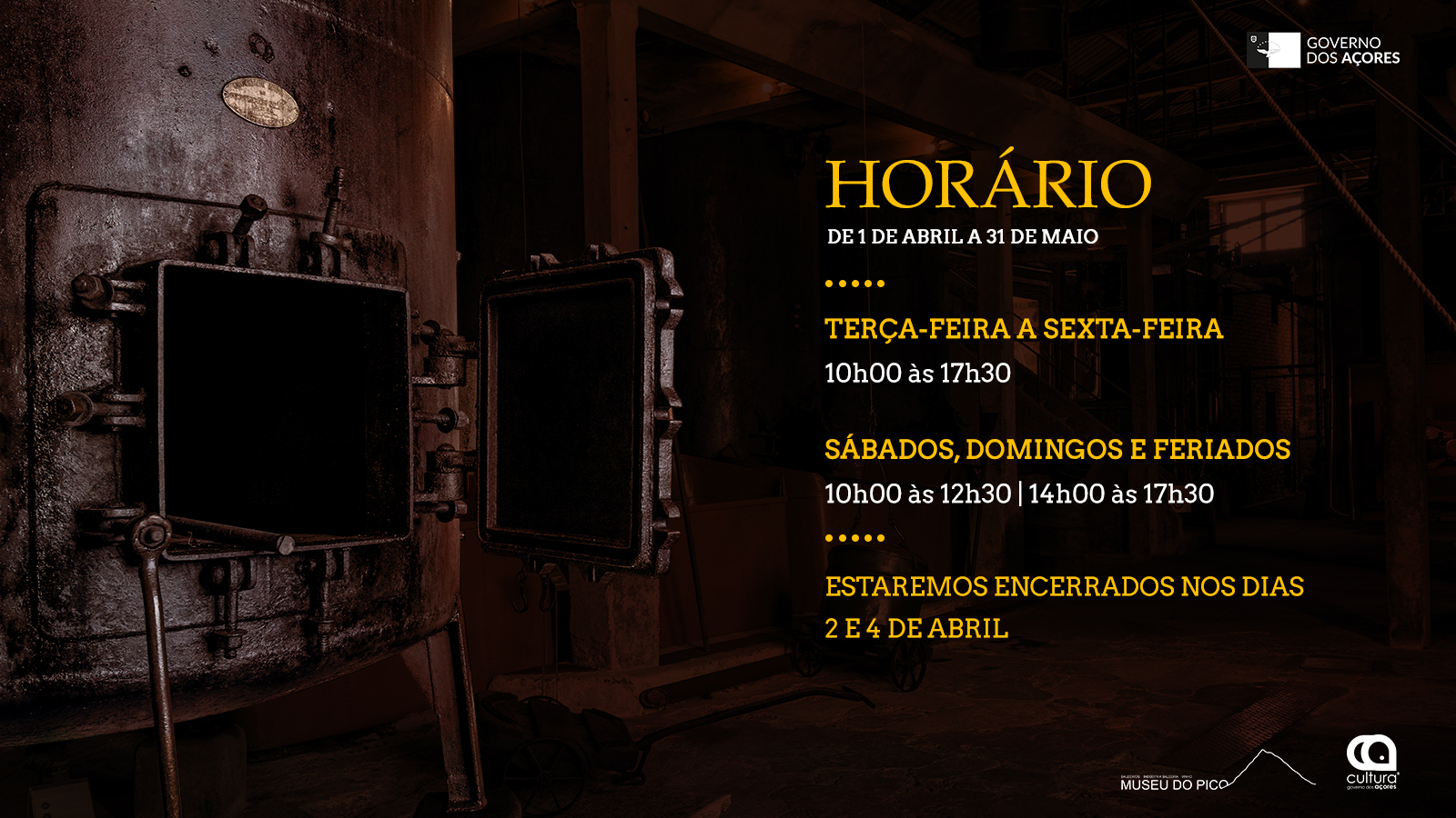 Informamos que o Museu do Pico terá novo horário, de 1 de abril a 31 de maio de 2021.