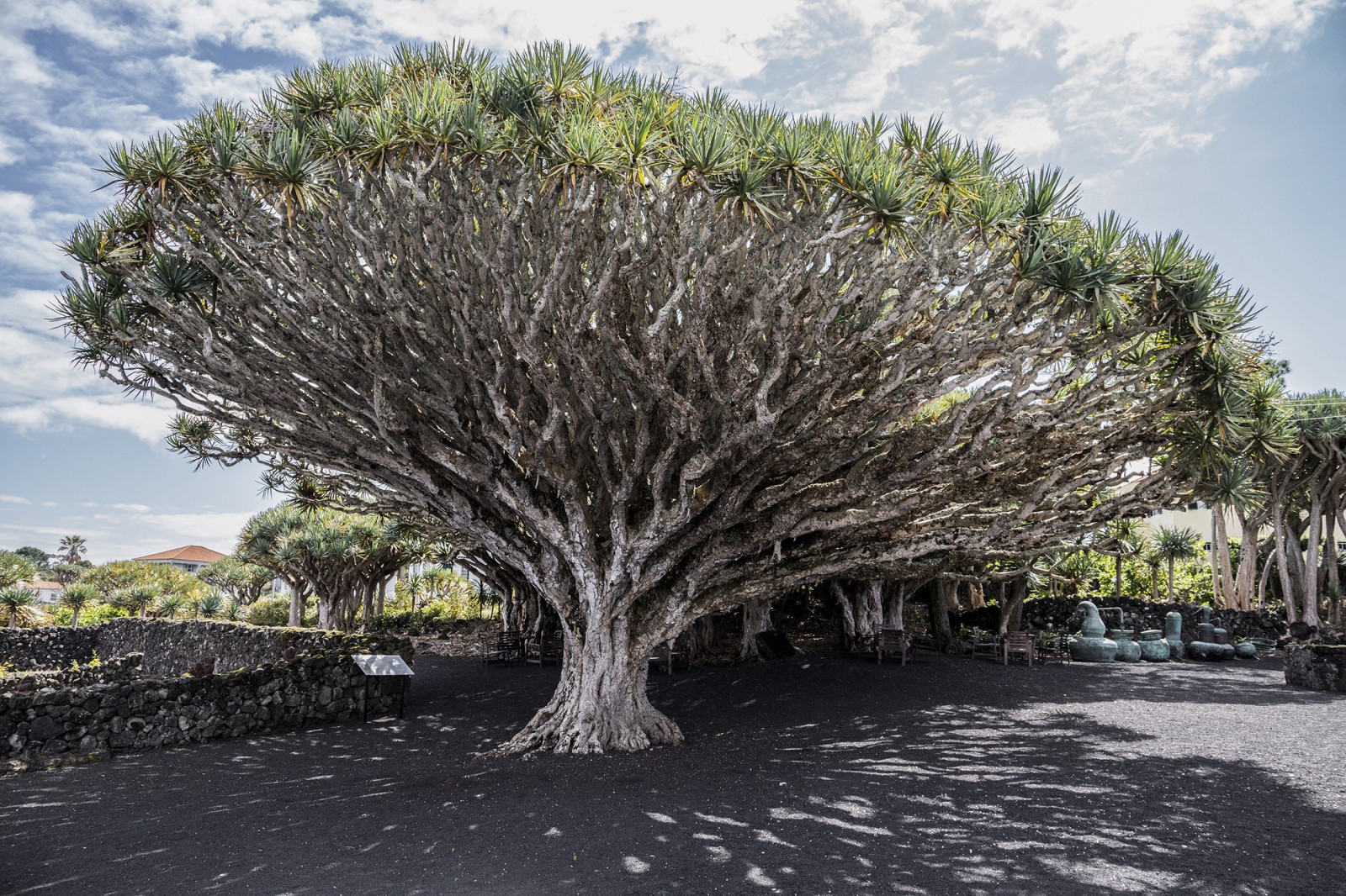 Os dragoeiros do Museu do Vinho constituem o maior bosque desta espécie, na Macaronésia, com exemplares centenários. Esta foi uma das principais plantas tintureiras, com interesse comercial, utilizadas entre os séculos XV e XIX. A sua resina, transparente e de cor vermelho sangue, conhecida por sangue de dragão ou drago, era utilizada na produção de tintas, corantes, lacres, vernizes e produtos medicinais. As folhas chegaram a ser usadas pelos tanoeiros no calafeto de vasilhame e pelos viticultores na amarra de enxertos. Atualmente são utilizadas na produção de artesanato.