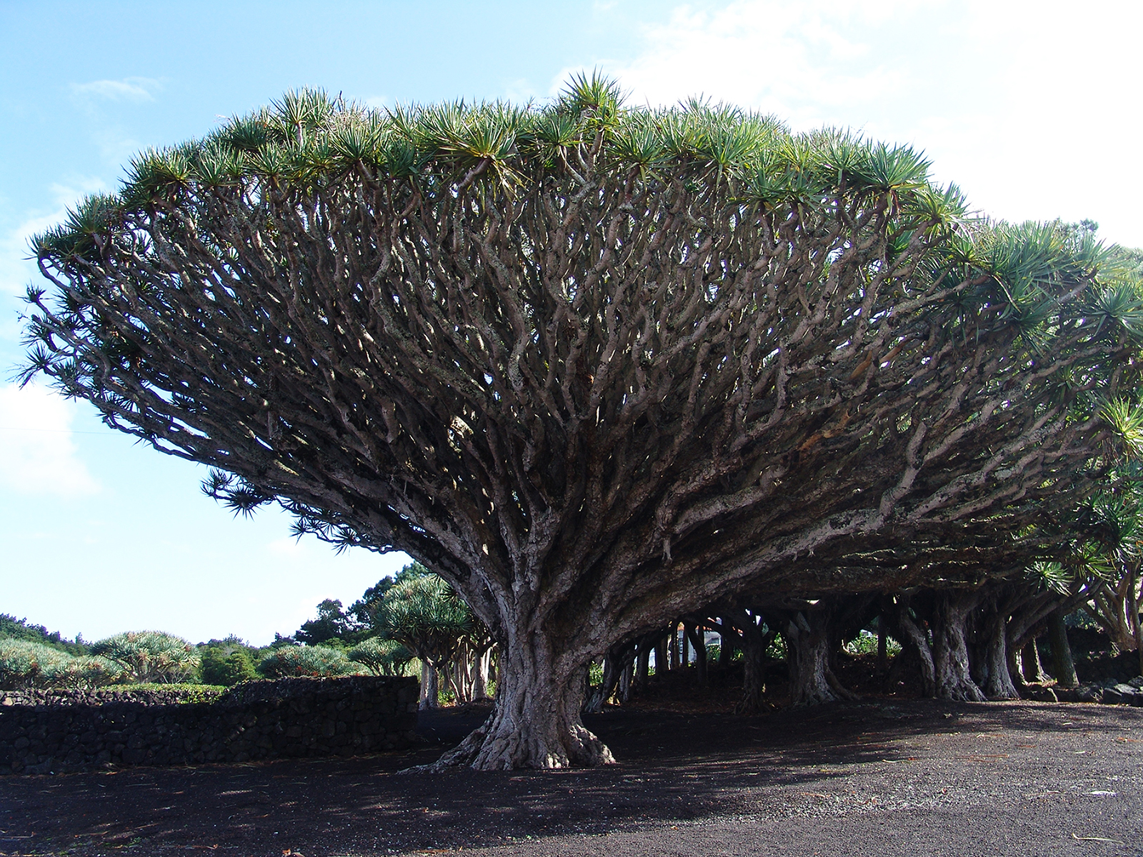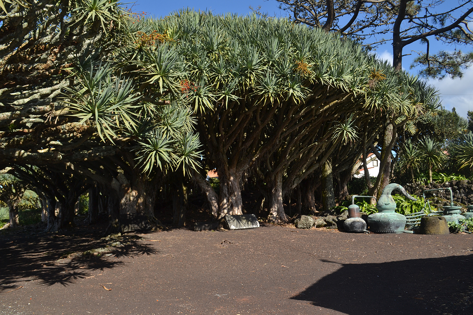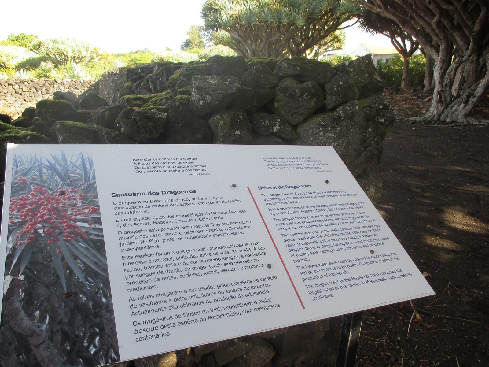 Os dragoeiros do Museu do Vinho constituem o maior bosque desta espécie, na Macaronésia, com exemplares centenários. Esta foi uma das principais plantas tintureiras, com interesse comercial, utilizadas entre os séculos XV e XIX. A sua resina, transparente e de cor vermelho sangue, conhecida por sangue de dragão ou drago, era utilizada na produção de tintas, corantes, lacres, vernizes e produtos medicinais. As folhas chegaram a ser usadas pelos tanoeiros no calafeto de vasilhame e pelos viticultores na amarra de enxertos. Atualmente são utilizadas na produção de artesanato.