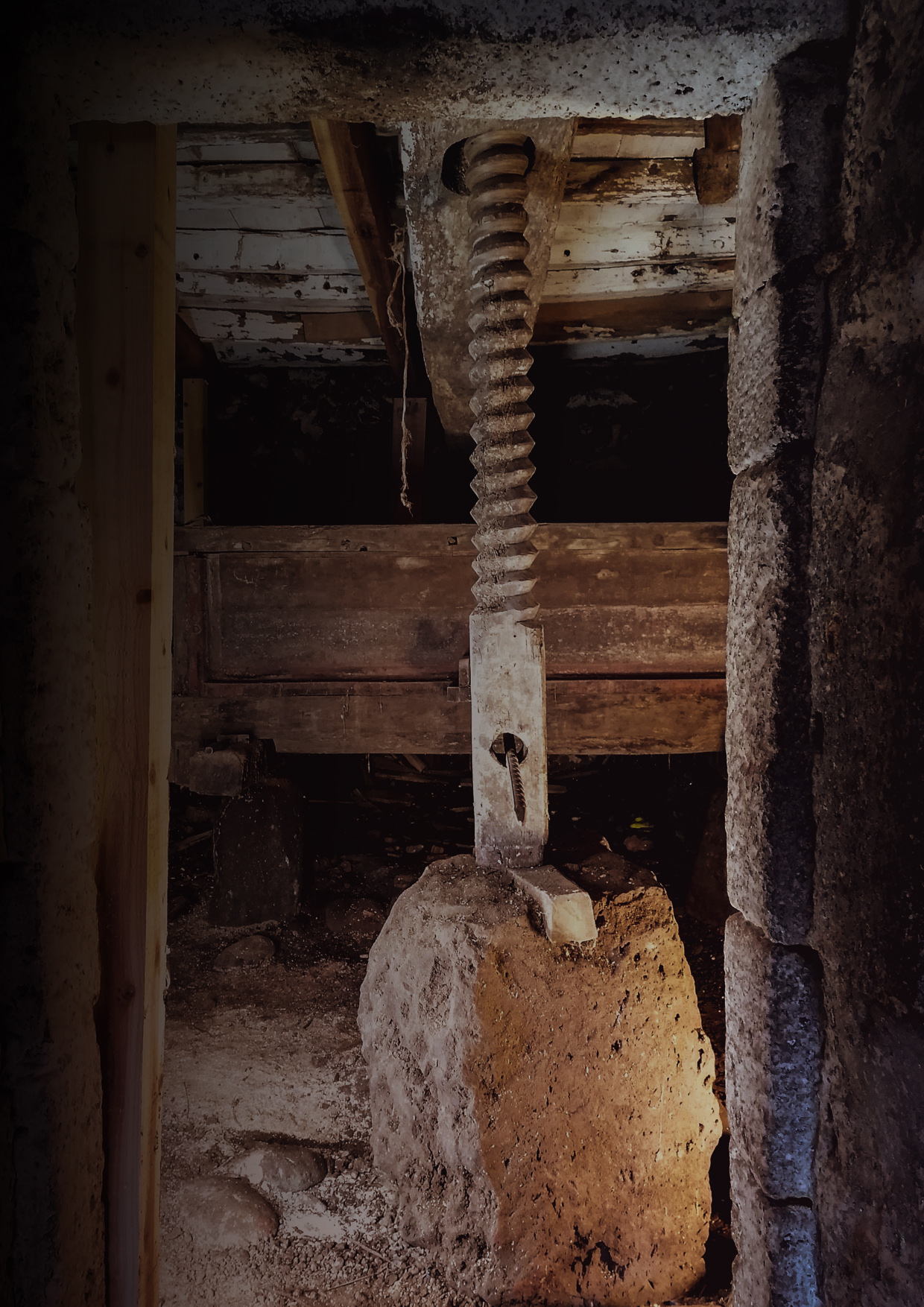 Lagar secular, em madeira, nas reservas do Museu do Pico