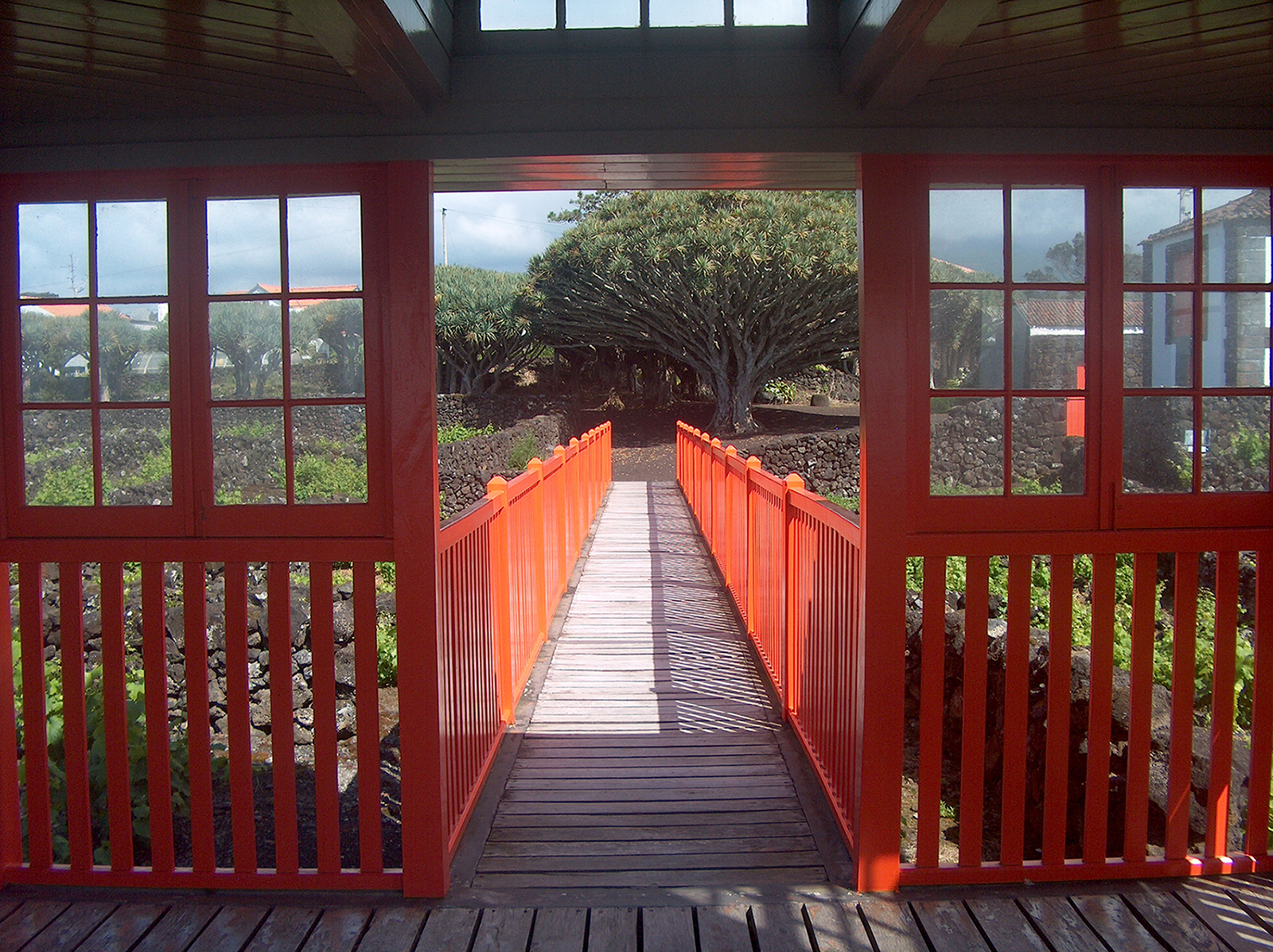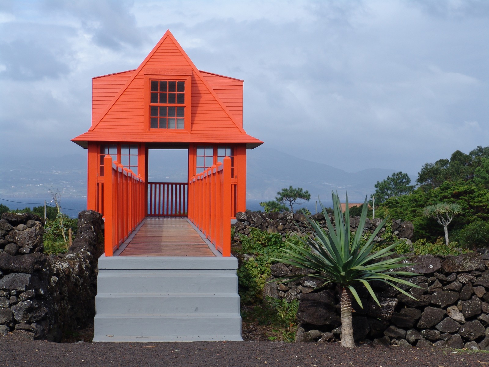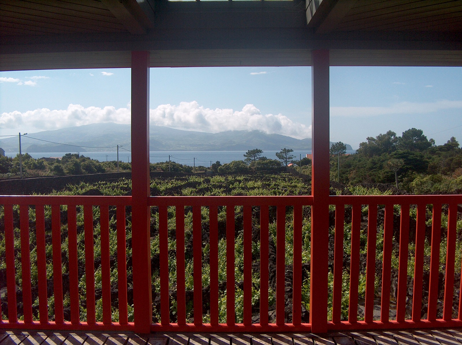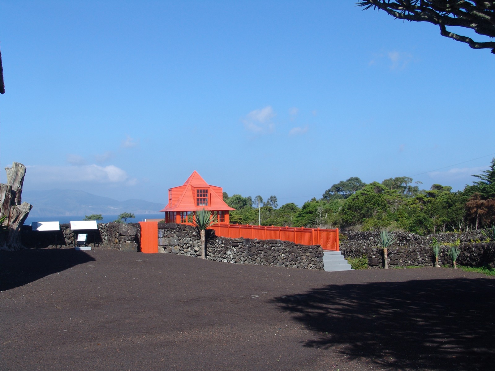 O miradouro é um elemento arquitetónico emblemático e de referência do Museu do Vinho. Projeta-se através de um passadiço, em madeira, sobre os currais de vinha, estabelecendo uma forte cumplicidade, histórica e paisagística, com o Canal, a ilha do Faial e a Montanha.