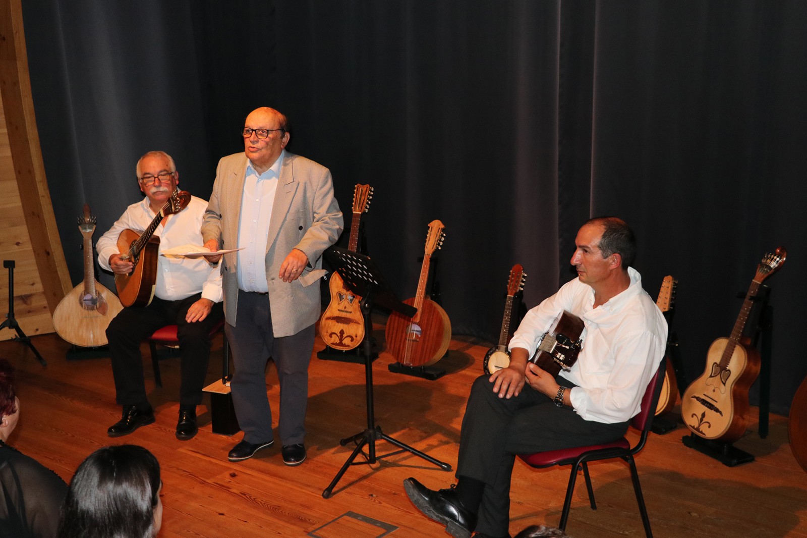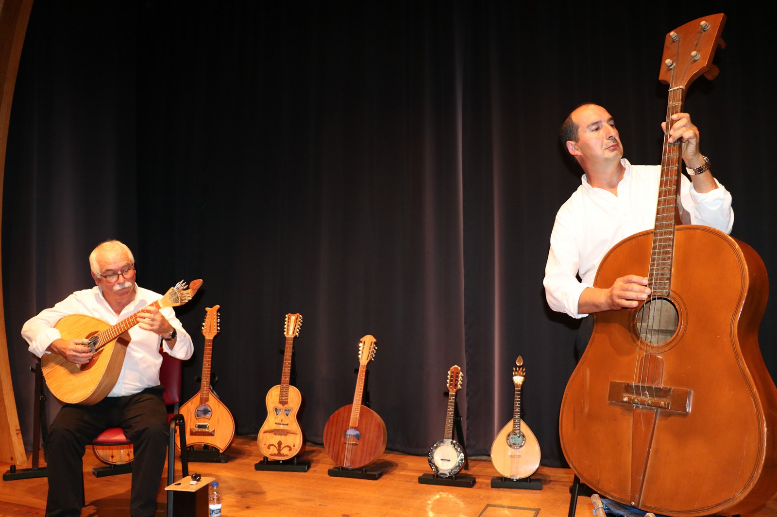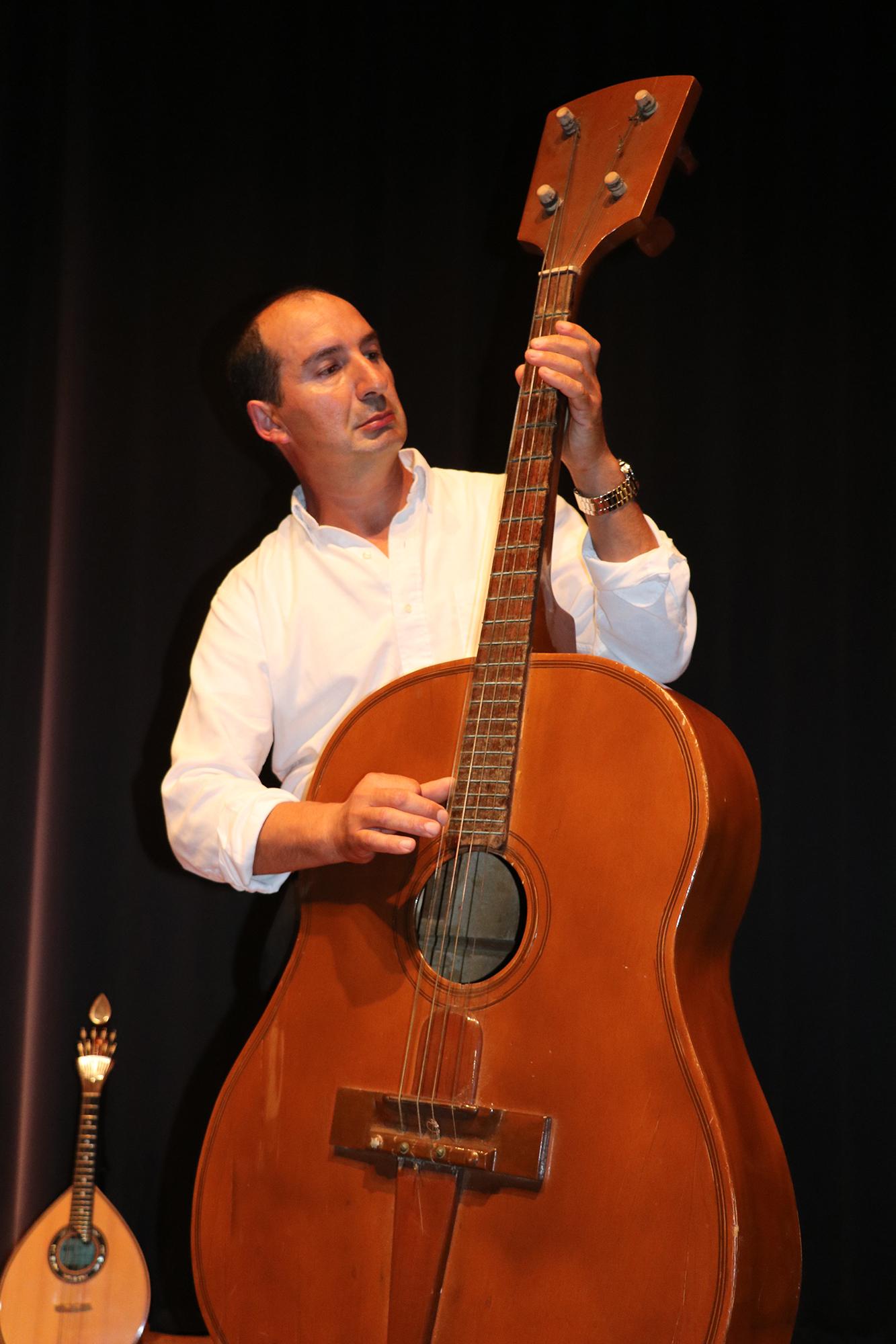 Laurindo Cardoso, carpinteiro reformado, também é construtor de instrumentos. “Carpinteiro dá para muitas coisas,” admite com um sorriso, “uns dias eram janelas, outros dias eram instrumentos.” Foi em 1985 que construiu o seu primeiro instrumento de cordas, um bandolim, que sobe ao palco para tocar um passo-dobrado. Mas também a bandola, o sexto instrumento que constrói, depois de uma guitarra, com um formato diferente, uma viola da terra, uma guitarra portuguesa e ainda um novo bandolim. “Desta vez vai tudo ao palco, só com um cheirinho de cada instrumento, porque também levo instrumentos que fui adquirindo durante os anos, como um banjo bandolim.”