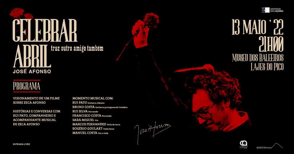 No dia 13 de maio, no Museu dos Baleeiros, nas Lajes do Pico, o Museu do Pico organizará uma sessão de homenagem ao mítico cantor português Zeca Afonso, passados que são 35 anos do seu desaparecimento.