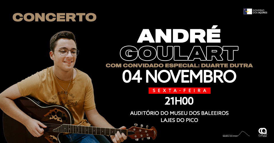 O Museu do Pico promove, no próximo dia 04 de novembro, pelas 21h00, no Auditório do Museu dos Baleeiros, nas Lajes do Pico, um concerto com André Goulart.