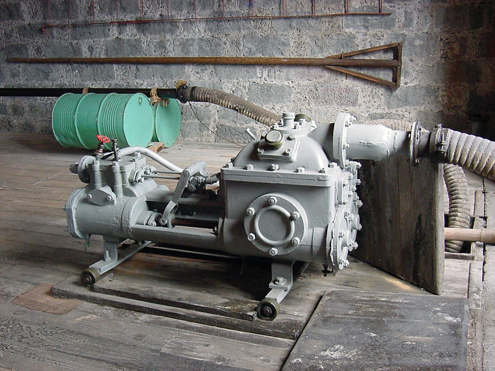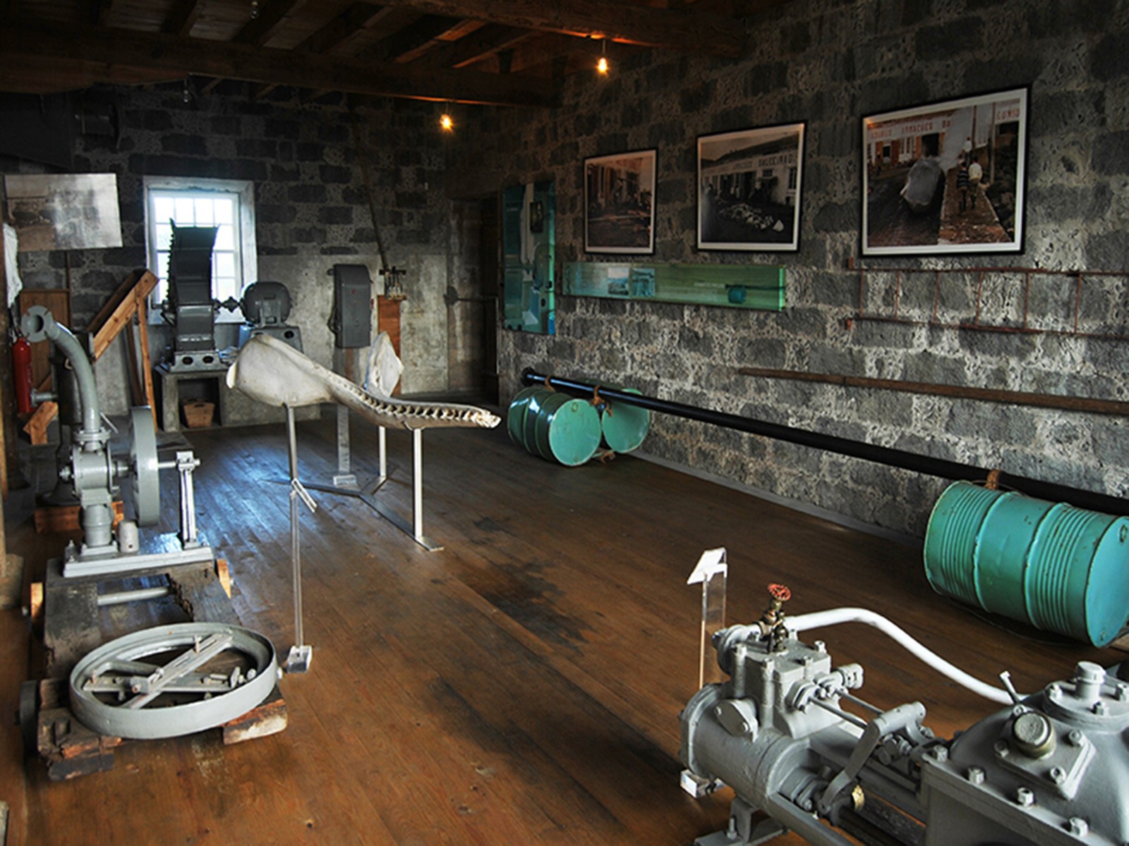 O óleo produzido era armazenado em depósitos subterrâneos, com cerca de catorze toneladas de capacidade, situados sob o pavimento do armazém das farinhas. O óleo de cachalote, quase todo exportado para países europeus, começou por ser transportado em barris e, mais tarde, em bidões e navios-cisterna. O óleo era bombeado, através de um sistema de pipe-line, apoiado em jangadas de bidões, para os navios-cisterna que ancoravam ao largo. A primeira bomba (manual) foi substituída por uma bomba elétrica e posteriormente por uma a vapor.