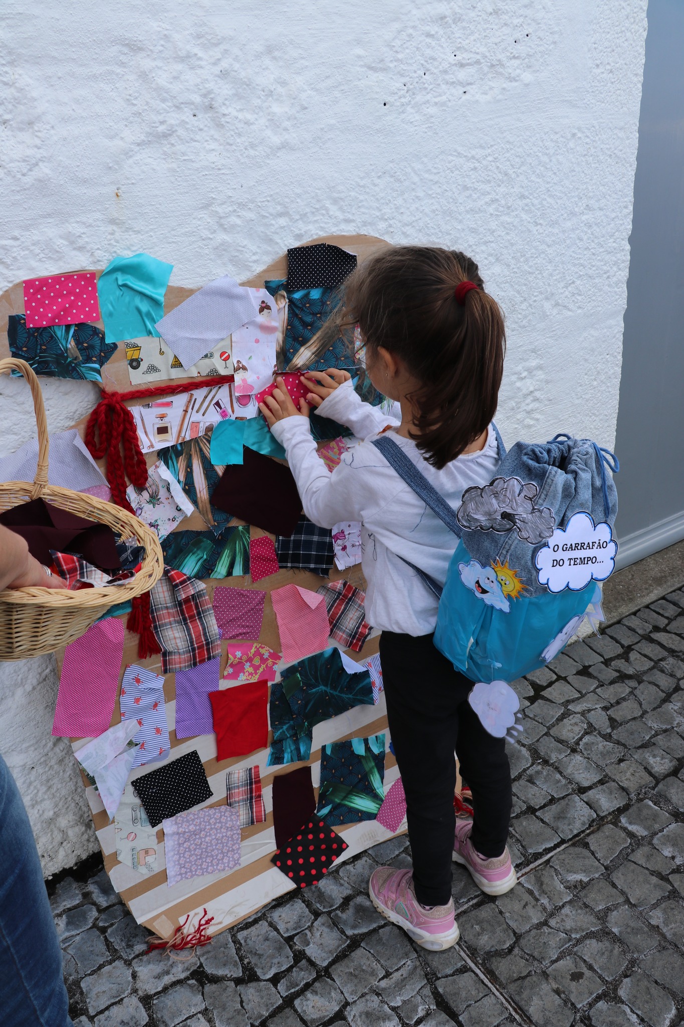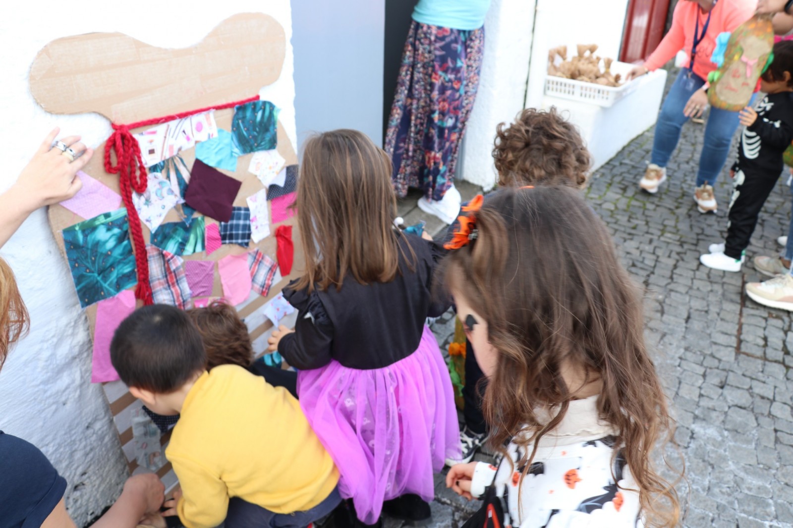 Este ano, além dos saquinhos para dar às crianças, quisemos ter uma pequena atividade, em que elas decoraram um saco recortado em cartão, com pequenos retalhos de tecido. Com muita alegria e energia, todas as crianças tiveram direito a colar um pedaço de tecido, dando origem a uma representação multicolorida do tradicional saco de retalhos do Pão Por Deus.