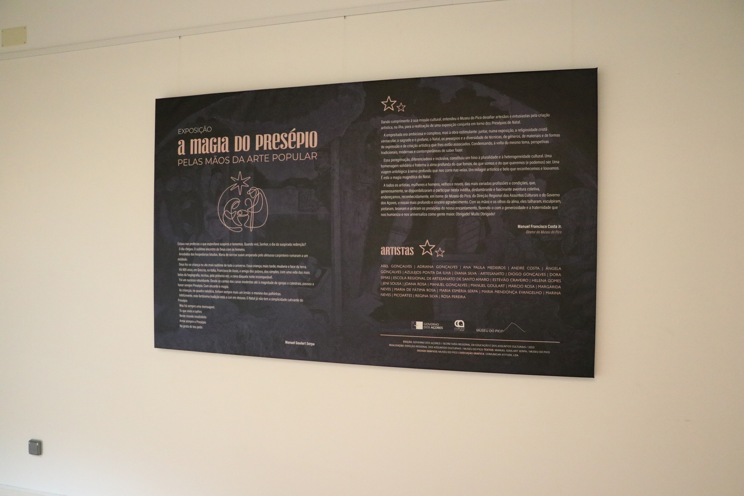 O Museu do Pico inaugurará no próximo dia 7 de dezembro, no Museu dos Baleeiros, nas Lajes do Pico, a exposição temporária intitulada “A magia do presépio, pelas mãos da arte popular”. Este ano, quisemos evidenciar um dos elementos mais mágicos desta quadra natalícia. Foi no ano de 1223, precisamente há 800 anos, que nas montanhas de Greccio (Itália), Francisco de Assis, recriou pela 1ª vez o nascimento de Jesus. Partindo deste contexto (histórico e cultural), lançámos o desafio a artesãos e entusiastas pela criação artística, na ilha, para produzirem um presépio, dando asas à criatividade e originalidade. Muitos aceitaram o desafio e temos presépios, produzidos com materiais tradicionais como a madeira, o barro, e menos convencionais como o vidro, a pedra, a palha, as escamas de peixe, as folhas de milho, as folhas de dragoeiro, as conchas, o tecido, o azulejo, o cabedal, o marfim, as flores secas, as rendas, o bambu…Estes são a prova da imaginação, da inspiração, da mestria e da dedicação sempre presentes nos seus trabalhos. O artesanato faz parte do nosso património cultural, material, imaterial, e com esta exposição criamos uma ponte entre a cultura, e o natal.