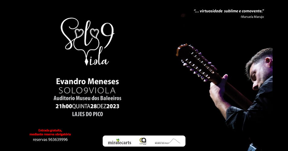 SOLO9VIOLA, com músicas originais e com arranjos de músicas tradicionais pelo músico Evandro Meneses é um espetáculo único da Viola dos dois corações. Do original ao tradicional, numa viagem pelas suas 9 ilhas, destaca-se o instrumento mais único da nossa região.