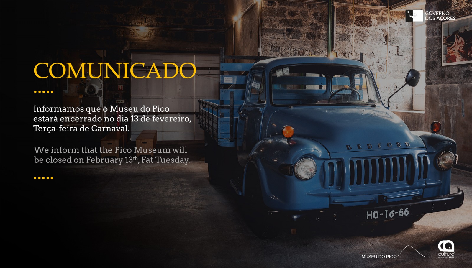 Informamos que o Museu do Pico estará encerrado no dia 13 de Fevereiro, Terça-Feira de Carnaval.