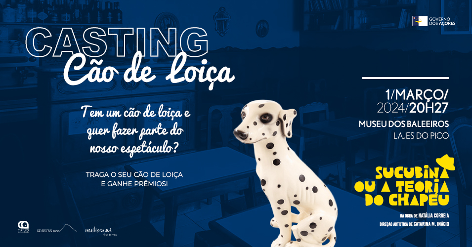Se tem um cão de loiça, com talento e vontade de integrar uma companhia amadora, mas com muito profissionalismo, apareça no Auditório do Museu dos Baleeiros, no próximo dia 1 de março, pelas 20h27, e traga o seu cão de loiça.