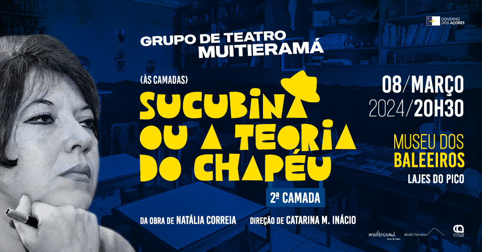 O Grupo de Teatro Muitieramá leva à cena a 2ª camada peça de teatro (Às Camadas) Sucubina ou Teoria do Chapéu, no próximo dia 8 de março, pelas 20:30h, no Auditório do Museu dos Baleeiros.