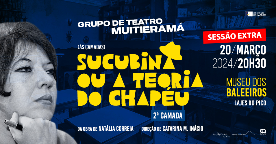 Devido à elevada afluência de público na primeira sessão, o Grupo de Teatro Muitieramá fará uma sessão extra da 2ª camada da peça de teatro "(Às Camadas) Sucubina ou Teoria do Chapéu", no próximo dia 20 de março, pelas 20:30h, no Auditório do Museu dos Baleeiros.