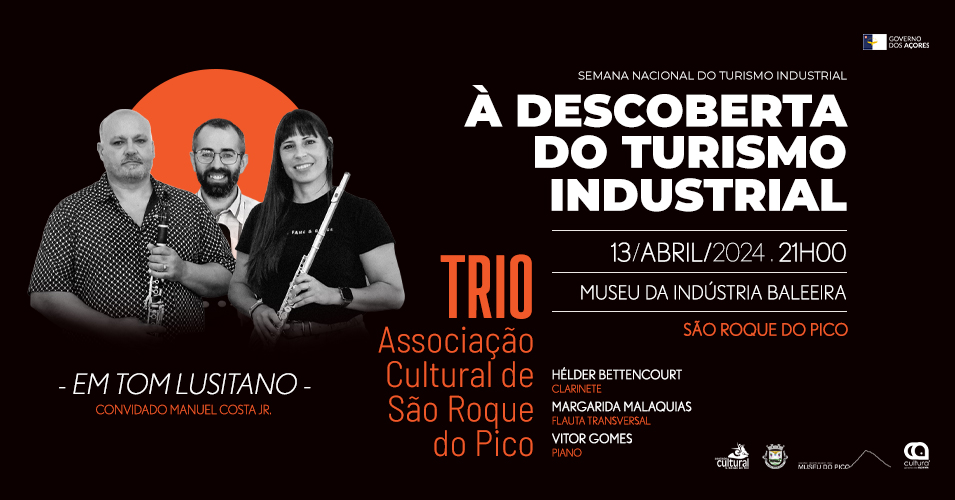 O Museu do Pico promove no dia 13 de abril, no Museu da Indústria Baleeira, em São Roque do Pico, pelas 21h00, inserido na iniciativa nacional “À Descoberta do Turismo Industrial”, o concerto "Em Tom Lusitano" com o Trio da Associação Cultural de São Roque do Pico (ACSRP).