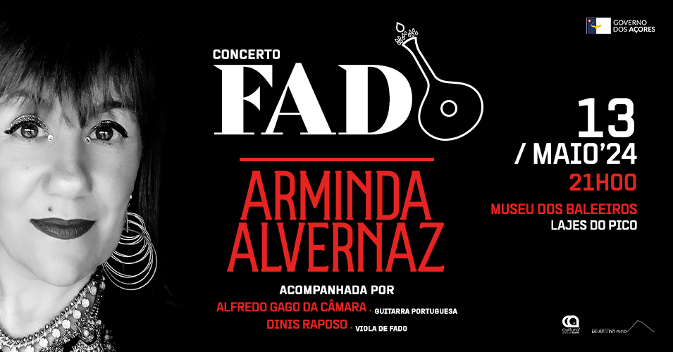 O Museu do Pico promove no dia 13 de maio, segunda-feira, no Museu dos Baleeiros, nas Lajes do Pico, pelas 21h00, no âmbito da comemoração da Noite Europeia dos Museus, o concerto com a fadista Arminda Alvernaz, acompanhada pelos músicos Alfredo Gago da Câmara, na guitarra portuguesa, e Dinis Raposo, na viola de fado.