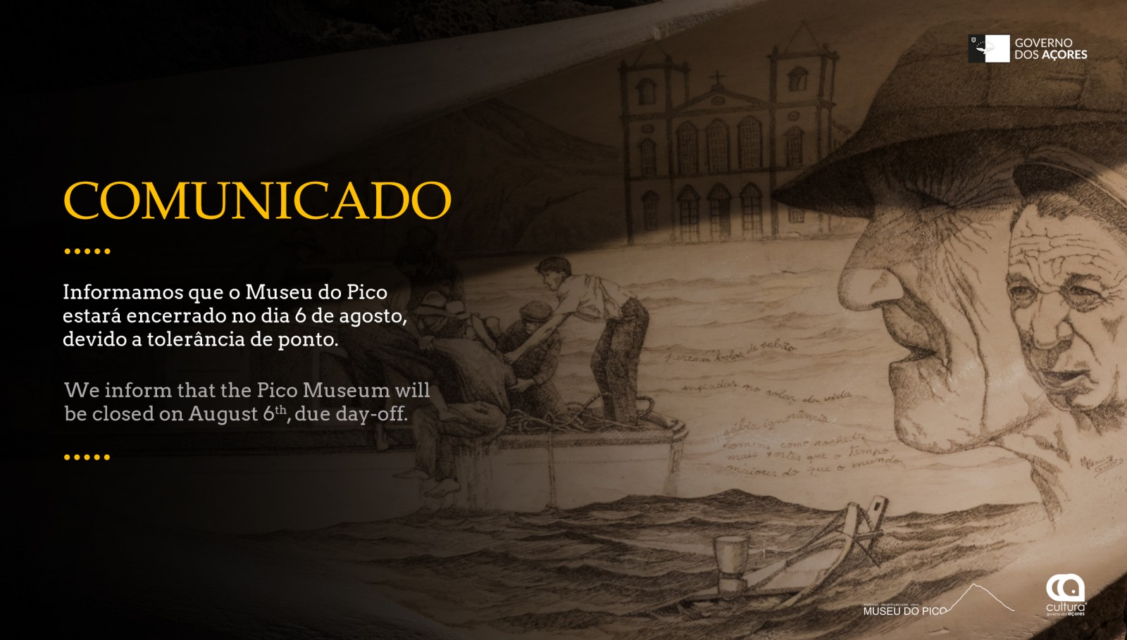 Informamos que o Museu do Pico estará encerrado no dia 6 de agosto, devido a tolerância de ponto.