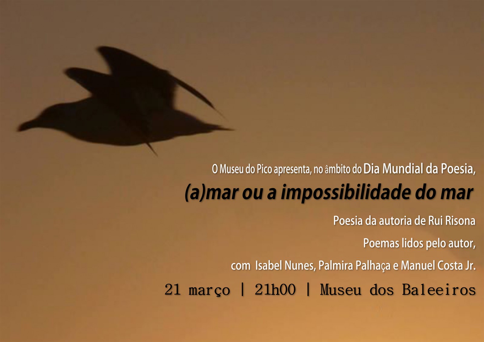 O Museu do Pico, no âmbito do Dia Mundial da Poesia, realizará próximo dia 21 de março, no auditório do Museu dos Baleeiros, nas Lajes do Pico, uma sessão de poesia intitulada (a) amar ou a impossibilidade do mar.