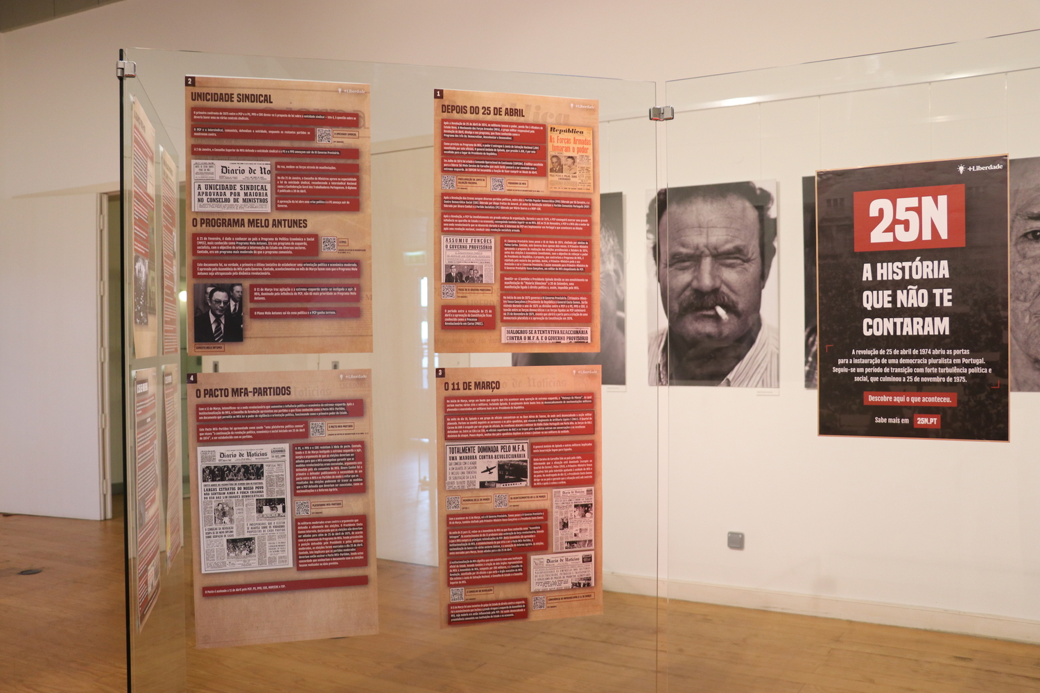 Esta exposição interativa e apelativa (composta por 15 painéis, bastante visual, com textos curtos, fotografias e QR Codes que remetem para vídeos da época), produzida pelo Instituto +Liberdade, aborda os principais episódios que ocorreram durante o Processo Revolucionário em Curso (PREC): a formação dos partidos depois do 25 de abril, o 11 de março, a reforma agrária, as nacionalizações, o verão quente, entre muitos outros momentos marcantes, que culminaram no 25 de novembro.