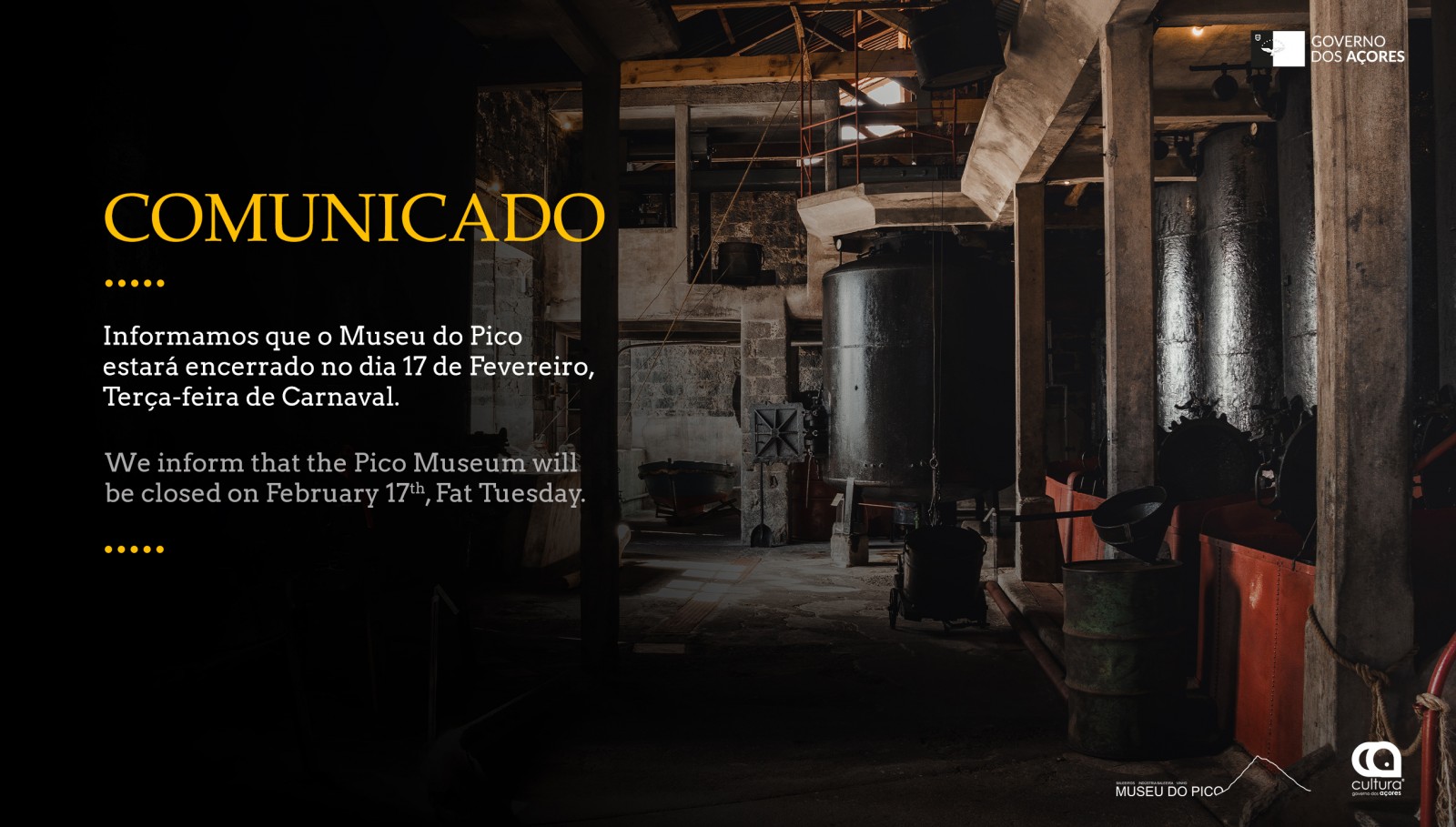 Informamos que o Museu do Pico estará encerrado no dia 17 de fevereiro de 2026, terça-feira de Carnaval.